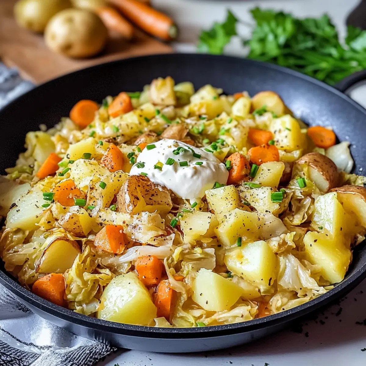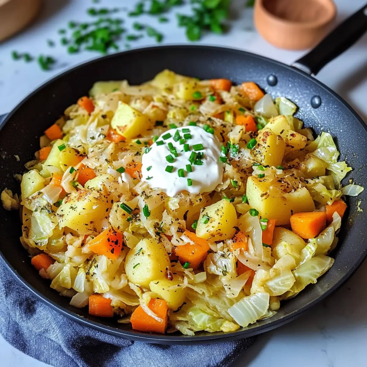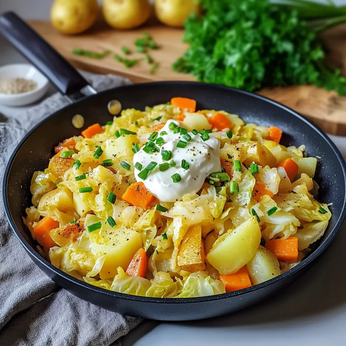 In der Hektik des Alltags kann das Kochen von gesunden und schmackhaften Gerichten manchmal zur Herausforderung werden. Doch meine 30-minütige Kohl-Pfanne mit Kartoffeln wird Ihre Küchenroutine revolutionieren! Dieser vegetarische Genuss verbindet zarten Spitzkohl, würzige Kartoffeln und süße Karotten in einer cremigen Sauce aus Crème Fraîche – alles in nur einem Topf! Das Beste daran? Nicht nur ist dieses Gericht super schnell zubereitet, es ist auch perfekt für gemütliche Abende, an denen Sie sich nach einem langen Tag einfach nur verwöhnen möchten. Mit einer reichen Texture und aromatischem Geschmack wird diese Kohlpfanne garantiert zum neuen Lieblingsrezept in Ihrem Zuhause. Neugierig auf die Zubereitung? Lassen Sie uns loslegen und die Küche zum Leben erwecken!