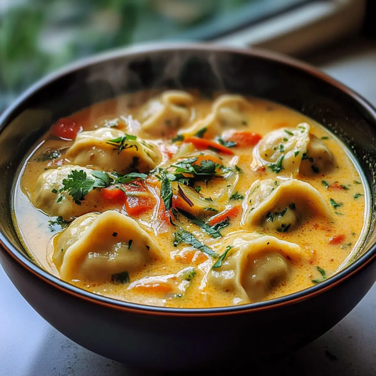 Mit etwas Vorausplanung wird die Kokosnusscurry-Suppe mit Knödeln dein bester Freund an hektischen Wochenabenden! Du kannst die Brühe bis zu 3 Tage im Voraus zubereiten; kühle sie danach gut ab und bewahre sie in einem luftdichten Behälter im Kühlschrank auf. Die gefrorenen veganen Knödel sind ebenfalls praktisch, da sie direkt in die heiße Brühe gegeben werden können. Wenn du die Suppe aufwärmst, achte darauf, sie sanft zu erhitzen – so bleibt sie genauso köstlich wie frisch gekocht. Garniere die Suppe kurz vor dem Servieren mit Frühlingszwiebeln und Koriander, um Frische und Geschmack zu bewahren. Mit diesen Vorbereitungen sparst du Zeit und genießt trotzdem jedes Mal ein wunderbares, hausgemachtes Gericht!