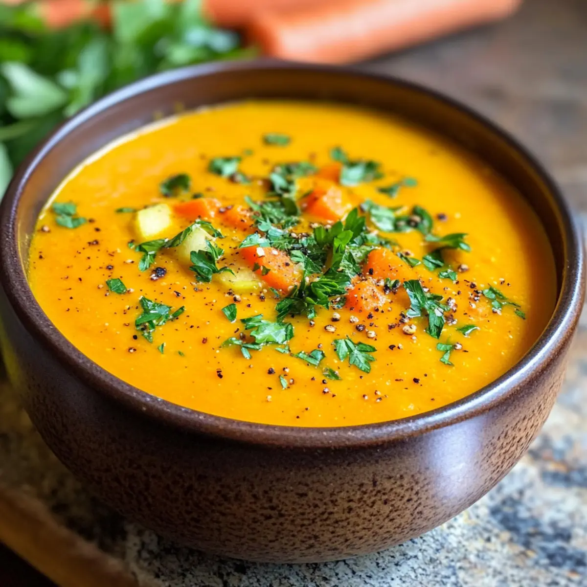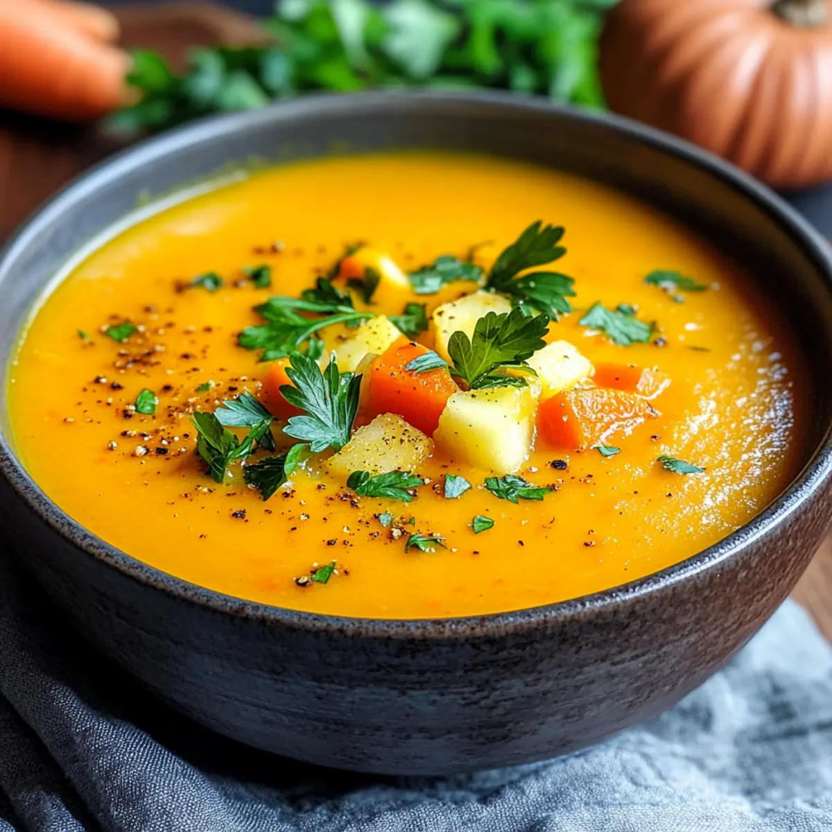 Wohltuende Wärme: Der einzigartige Mix aus Kürbis, Karotten und Kokosmilch schafft eine herzliche, wärmende Mahlzeit, die besonders an kalten Tagen perfekt ist.