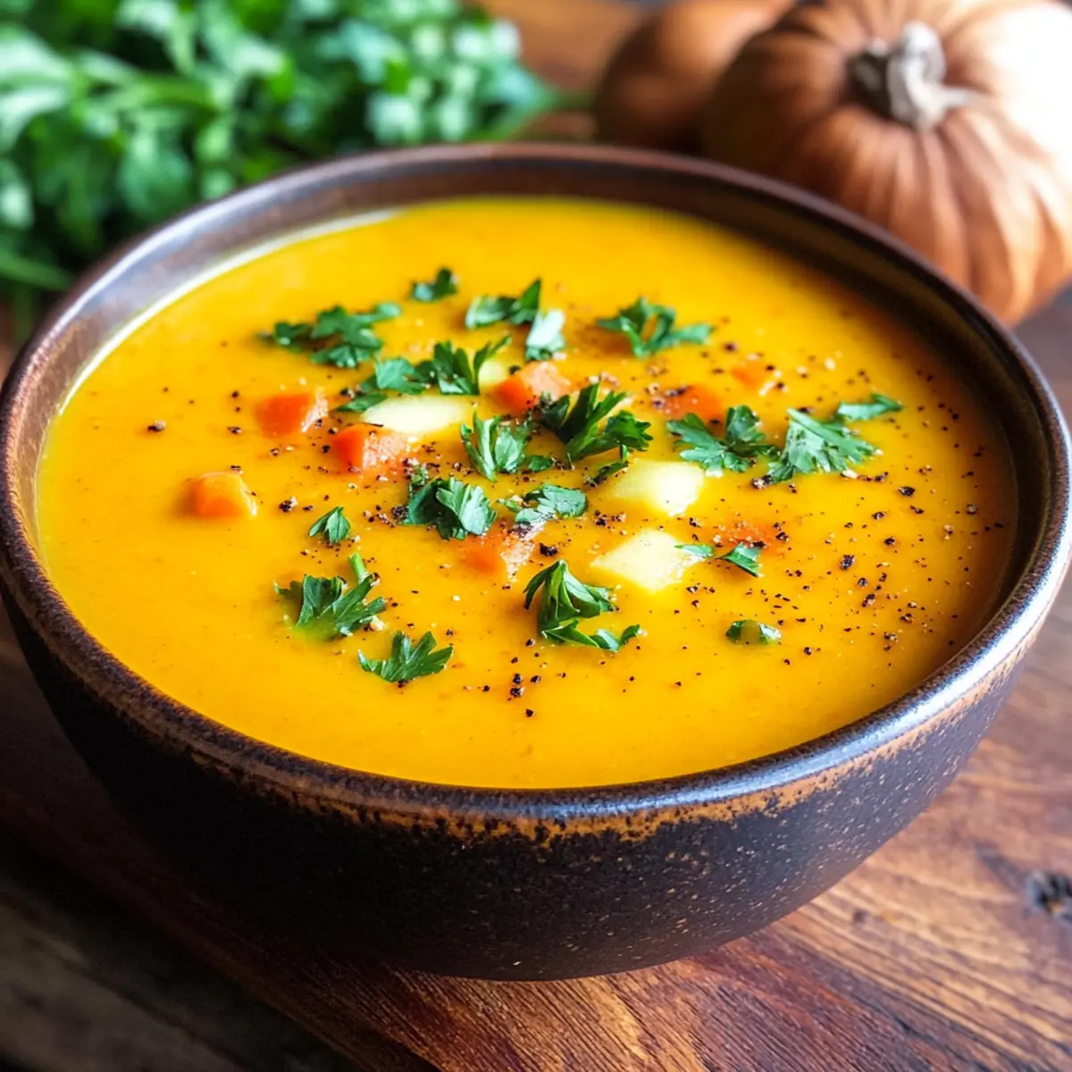 Cremige Kürbissuppe mit Kokosmilch und Karotten