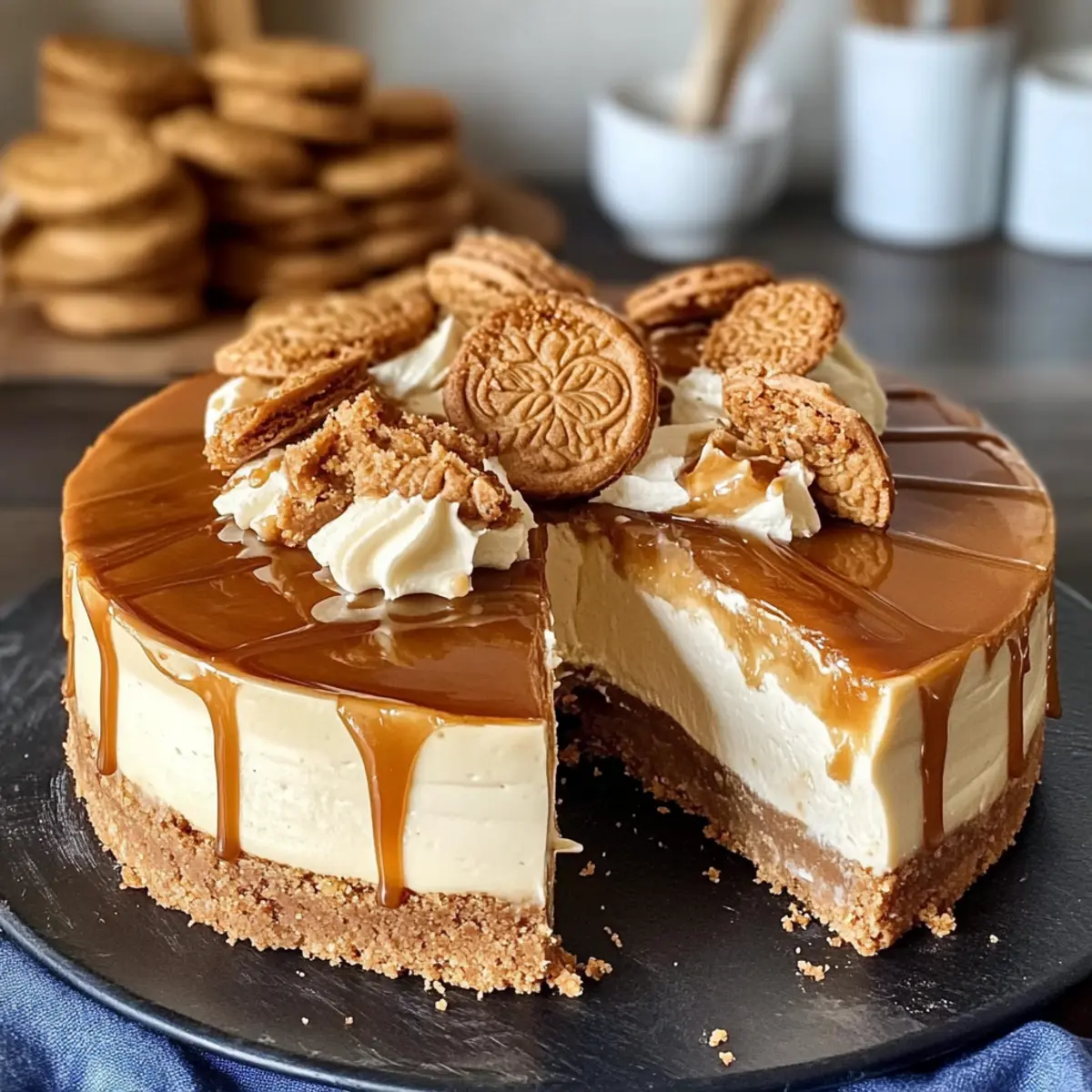 Zimtgebäck: Ein paar knusprige Zimtsterne oder Zimtschnecken liefern den perfekten Crunch und ein warmes Aroma, das den leckeren Karamellgeschmack des Käsekuchens wunderbar ergänzt.