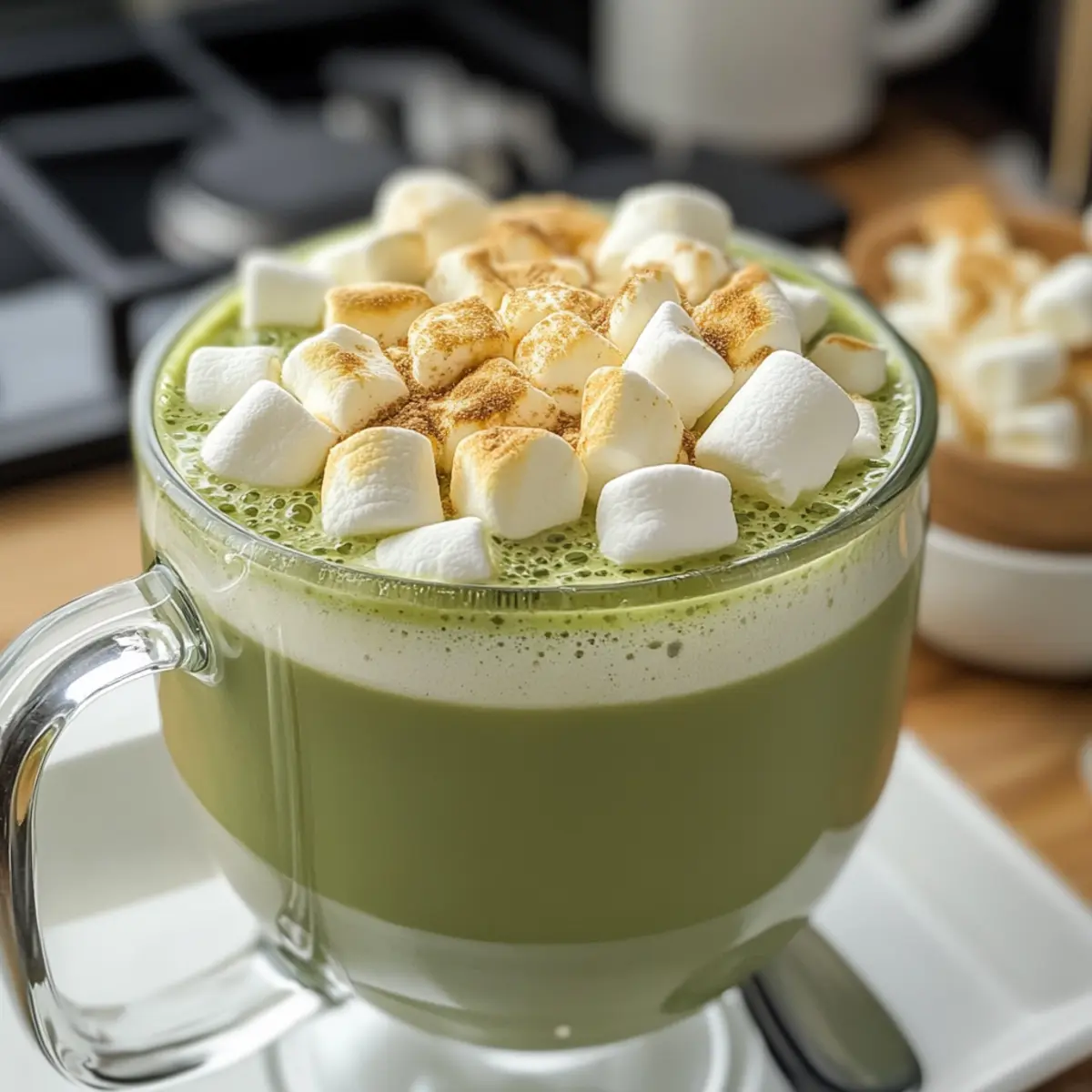 Die Möglichkeiten sind endlos! Du kannst geröstete Marshmallows, aufgeschlagene Sahne, dunkle Schokolade oder sogar eine Prise Zimt hinzufügen, um deiner Matcha weißen heißen Schokolade eine besondere Note zu verleihen. Sei kreativ und experimentiere mit verschiedenen Zutaten, die dir gefallen – je mehr, desto besser!