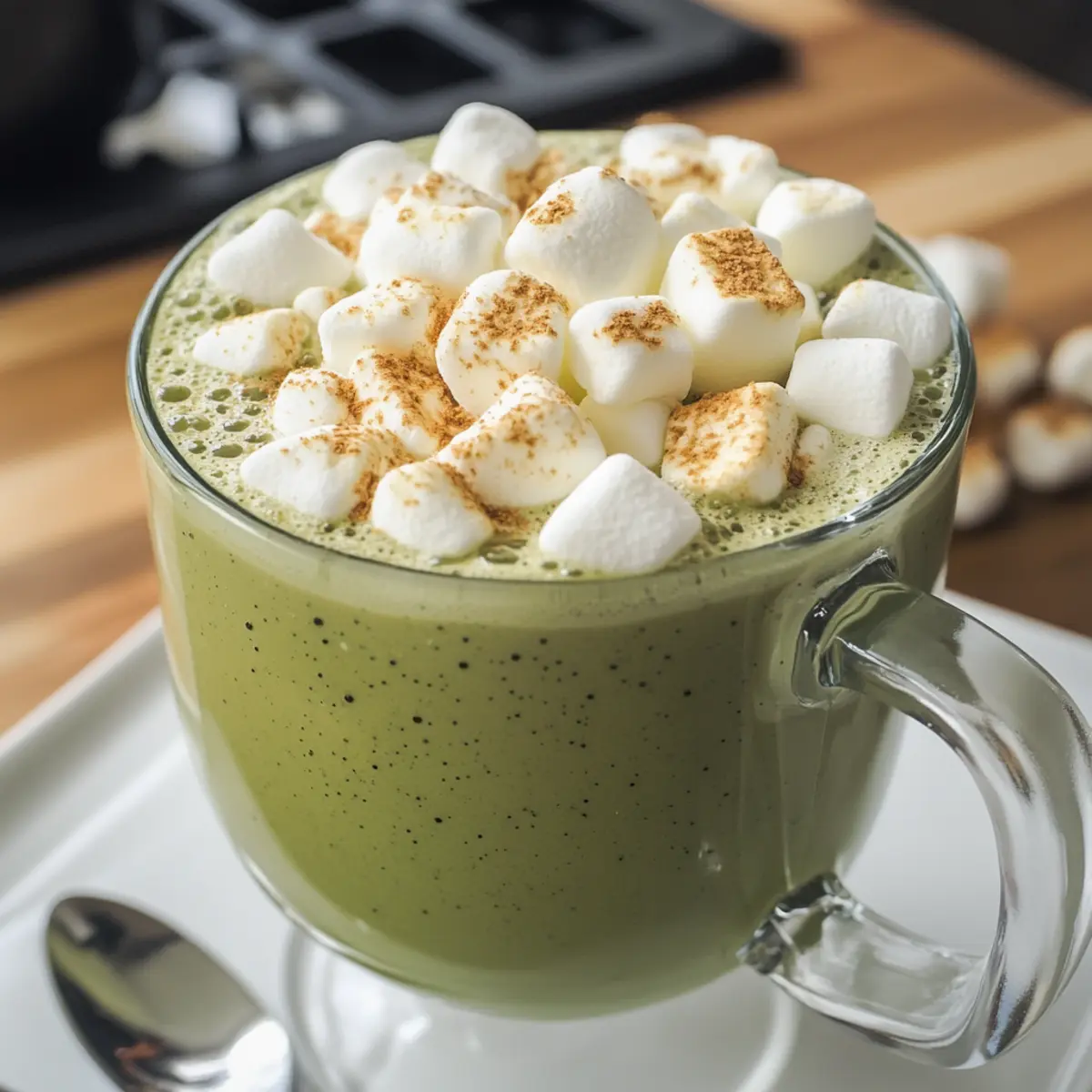 Einzigartiger Genuss: Diese Matcha weiße heiße Schokolade kombiniert die erdigen Aromen von Matcha mit der cremigen Süße von weißer Schokolade und bietet ein unvergleichliches Geschmackserlebnis.