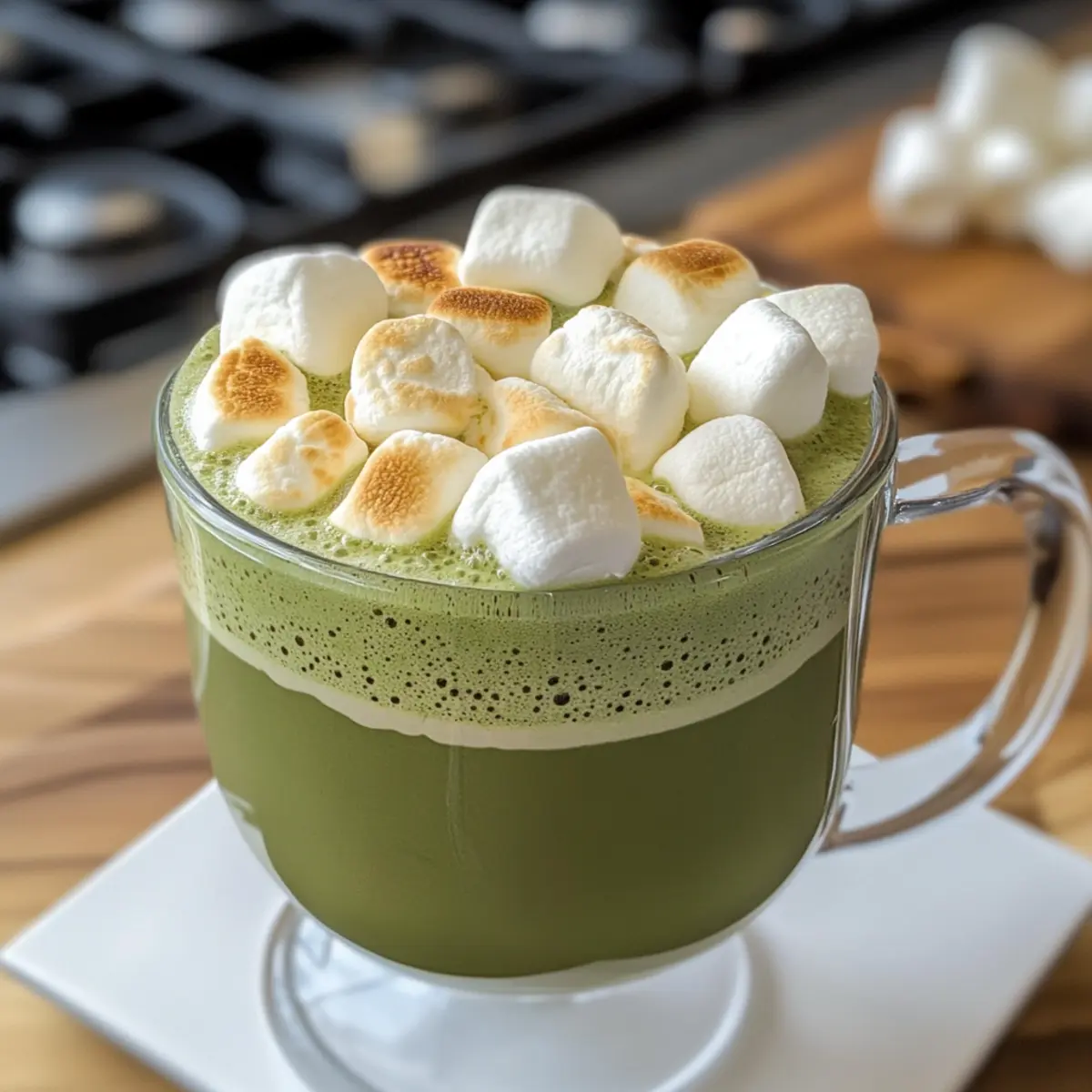 Gieße die fertige Mischung vorsichtig in schöne, vorgewärmte Gläser oder Tassen. Verschönere deine Matcha weiße heiße Schokolade nach Belieben mit optionalen Toppings wie gerösteten Marshmallows oder einem Schuss Schokoladensauce. Nimm dir einen Moment Zeit, um die Farben zu bewundern, bevor du dein köstliches Getränk genießt.