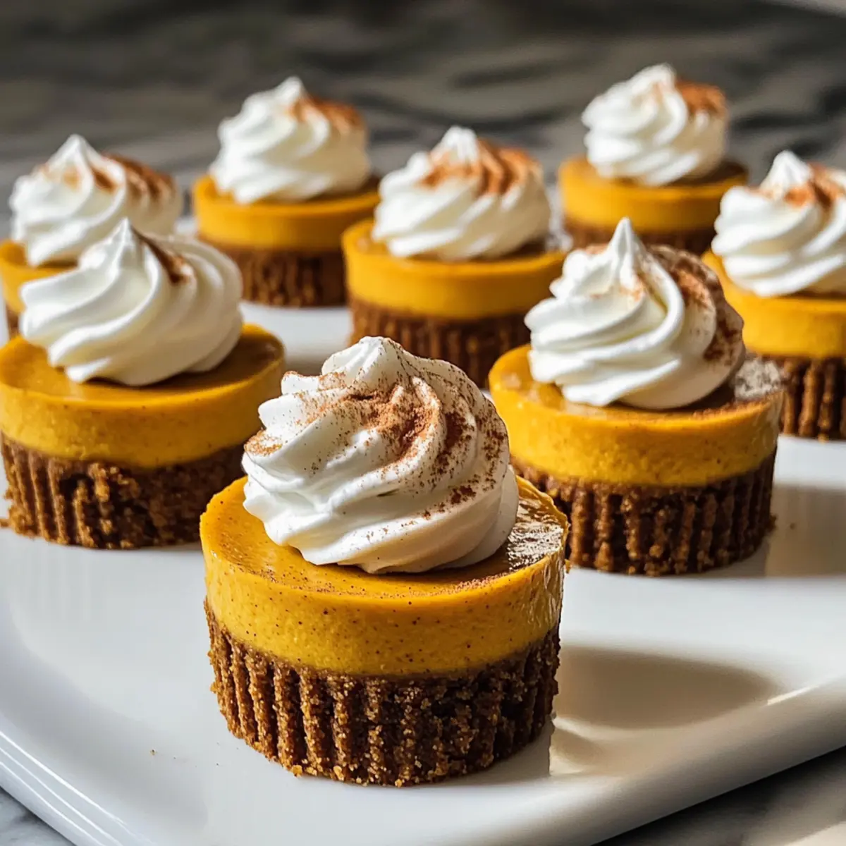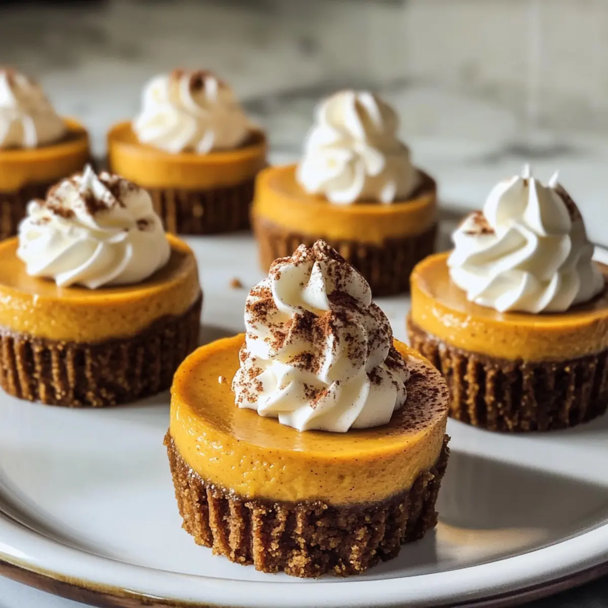 Einzigartiger Genuss: Diese Mini-Kürbis-Cheesecakes verbinden den warmen, würzigen Geschmack von Kürbis mit einem knusprigen Gingersnap-Boden. Einfache Zubereitung: Nur wenige Schritte sind nötig, um ein beeindruckendes Dessert zu kreieren, das selbst bei unerfahrenen Köchen gelingt. Perfekte Portionierungen: Ideal für Feiern, lassen sich diese kleinen Leckereien leicht servieren und erfreuen jeden Gast. Variationsmöglichkeiten: Du kannst das Rezept anpassen, indem du zum Beispiel die Gingersnaps gegen Schokoladenkekse austauschst oder eine Karamellschicht hinzufügst, um die Süße zu steigern. Vorbereitung leicht gemacht: Diese Cheesecakes können im Voraus zubereitet und bis zur servierung im Kühlschrank aufbewahrt werden, was sie perfekt für stressfreie Kochevents macht.