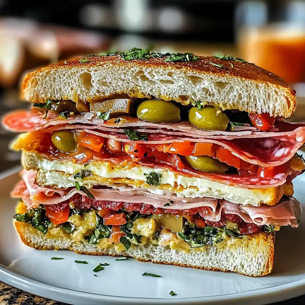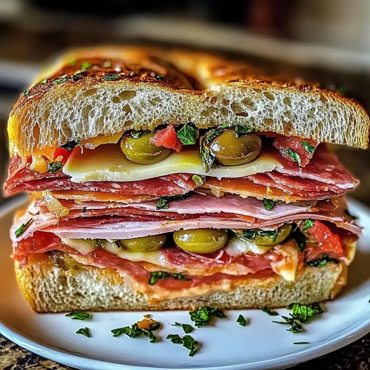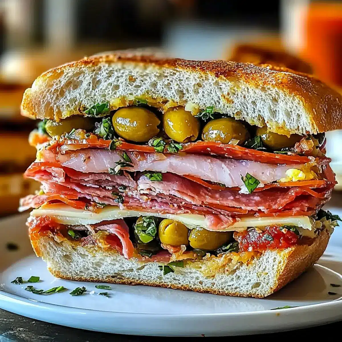Begeisterung garantiert: Der Muffuletta-Sandwich zieht alle Blicke auf sich und lässt sich wunderbar mit einem frischen Salat oder Kchips kombinieren – ideal für jeden Anlass!