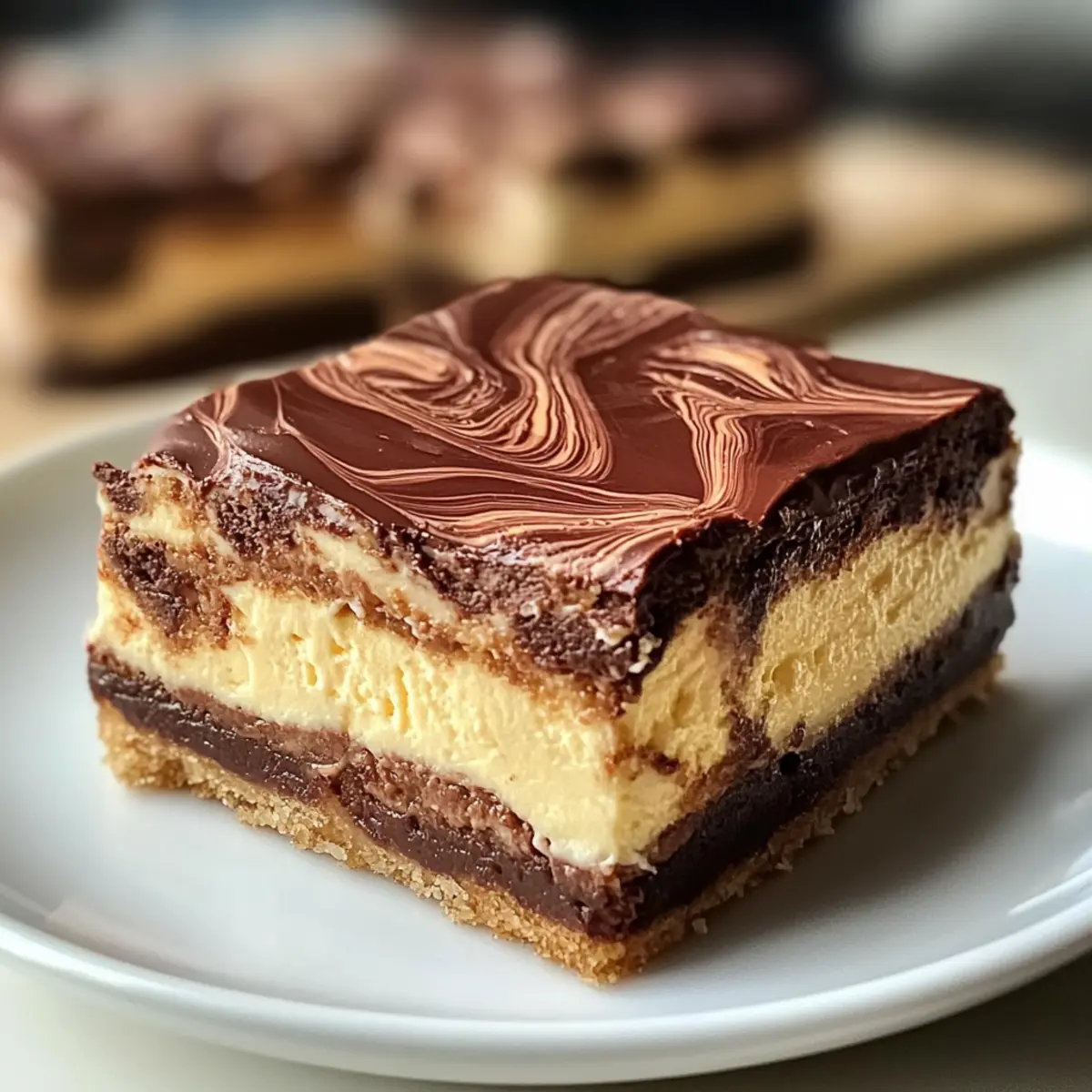 Erdnussbutter-Topping: Ein Klecks Erdnussbutter auf dem Riegel addiert einen nussigen Crunch und verleiht dem Dessert eine zusätzliche Geschmackstiefe.