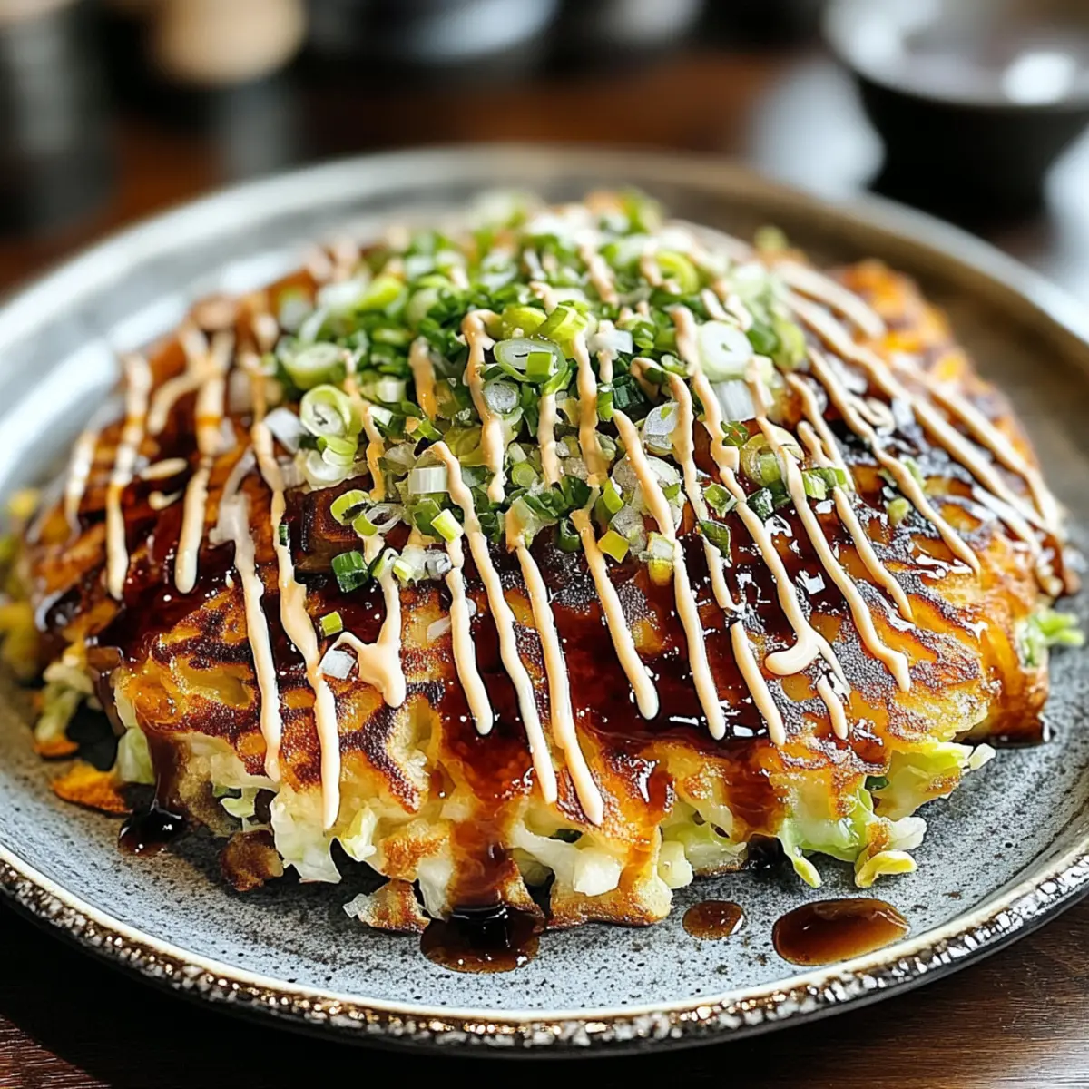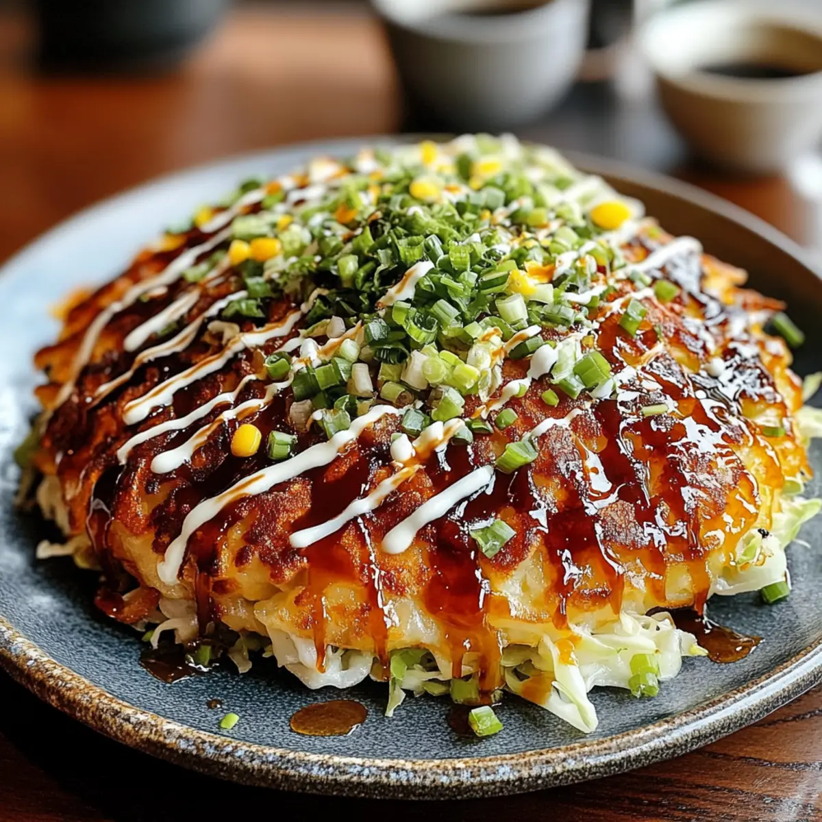 Herzhafter Genuss: Diese japanischen Pfannkuchen sind außen knusprig und innen zart, was jeden Bissen zu einem Geschmackserlebnis macht.