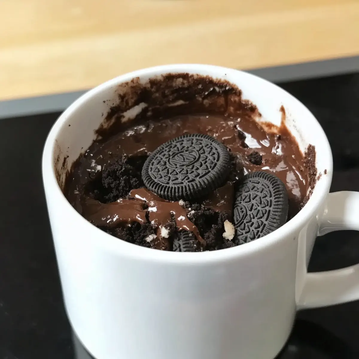 • Serviervorschläge: Genießen Sie den Kuchen warm direkt aus der Tasse, eventuell garniert mit Schlagsahne oder zusätzlichen Oreo-Krümeln für einen extra Crunch.
