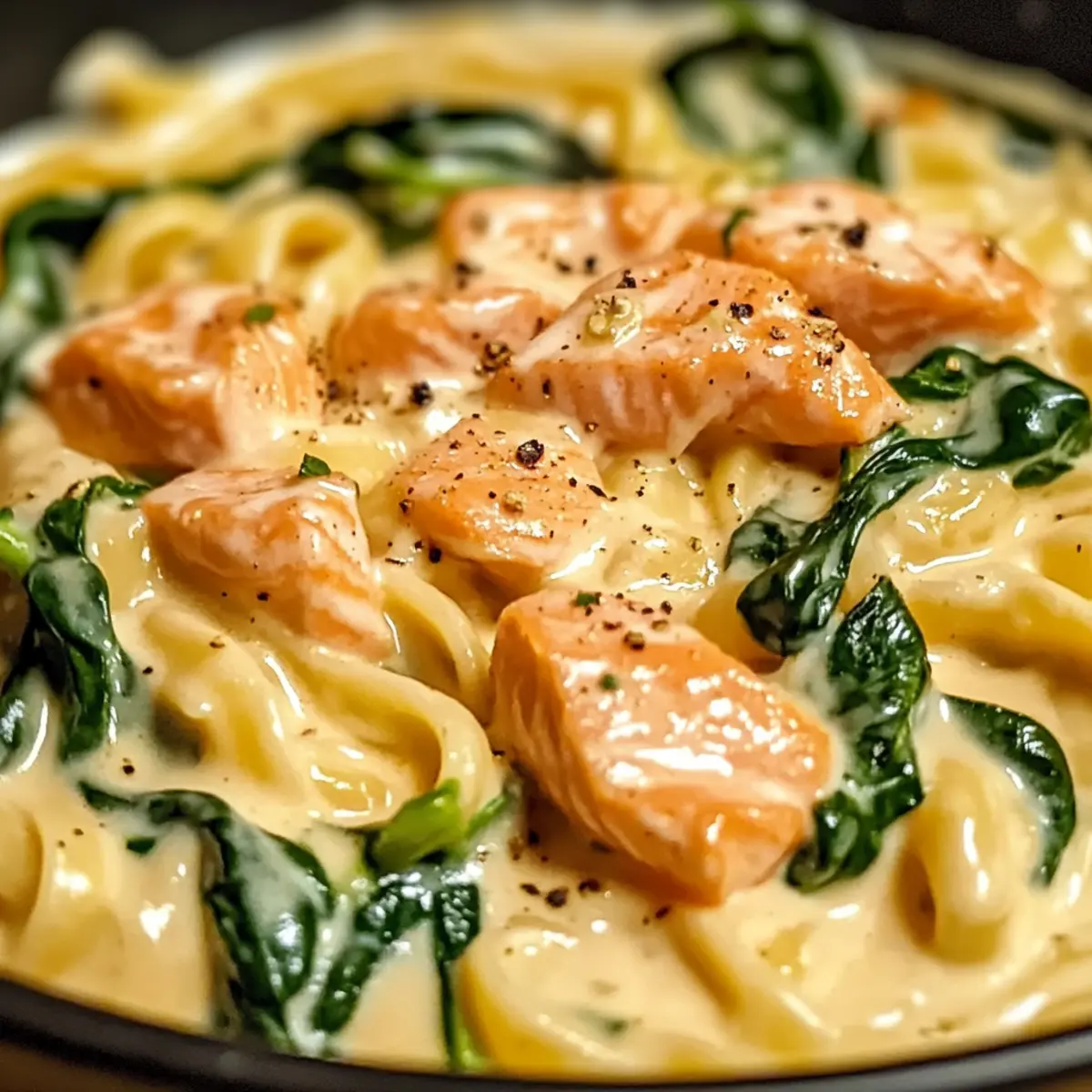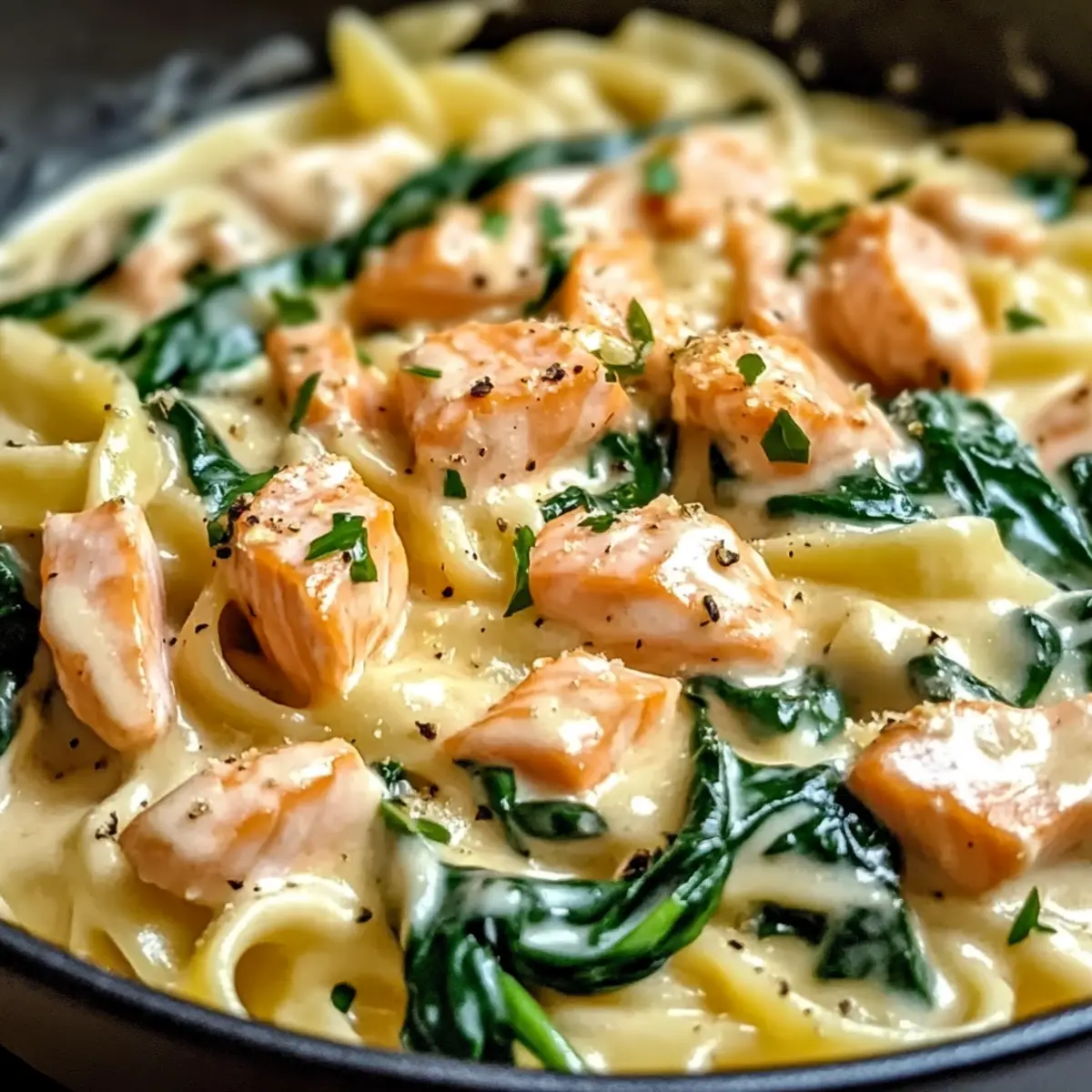Bei dieser Pasta in Lachssahnesoße und Spinat spielen die Zutaten eine entscheidende Rolle für den herzlichen Genuss. 🎉