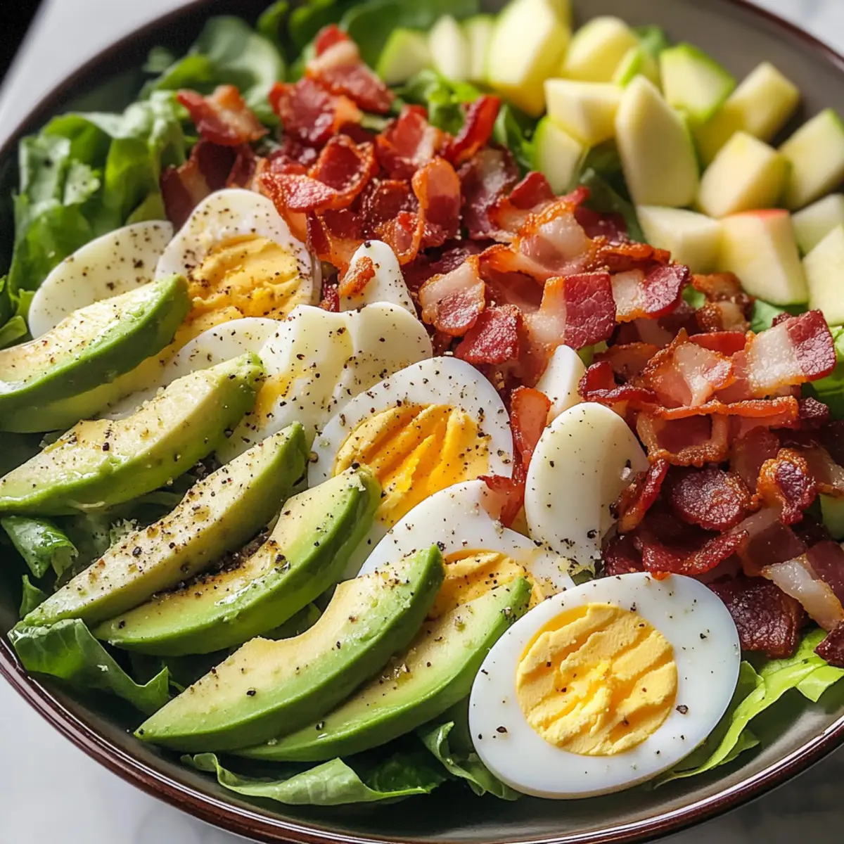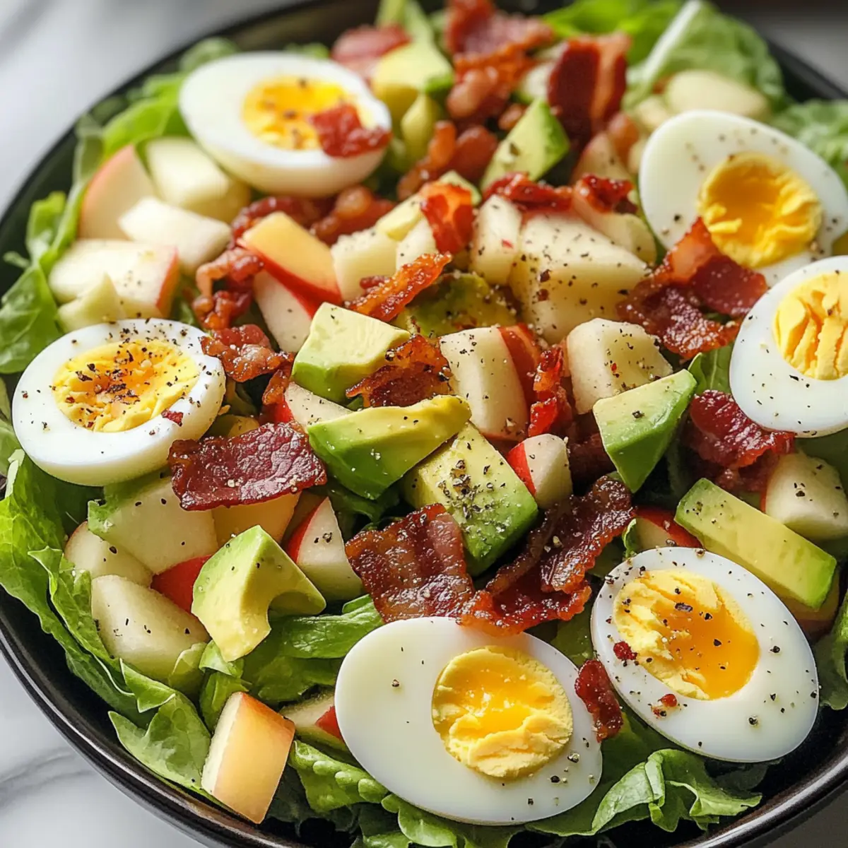 Es wird nicht empfohlen, den bereits zubereiteten Salat einzufrieren, da frische Zutaten wie Äpfel und Avocado ihre Textur und ihren Geschmack beim Auftauen verlieren. Wenn Sie Reste haben, können Sie jedoch die gekochten Eier und den Speck in einem luftdichten Behälter bis zu 3 Monate einfrieren; diese sollten dann bei Bedarf aufgetaut und erwärmt werden, jedoch keine frischen Zutaten hinzufügen, bis sie serviert werden.