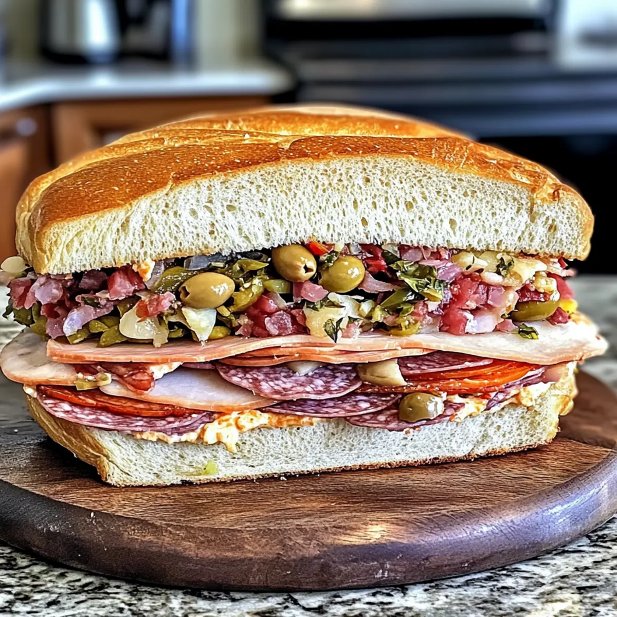 Hinweis: Diese Zutatenliste gibt Ihnen alles, was Sie für das köstliche Riesen Muffuletta italienisches Sandwich benötigen, perfekt für gesellige Anlässe.