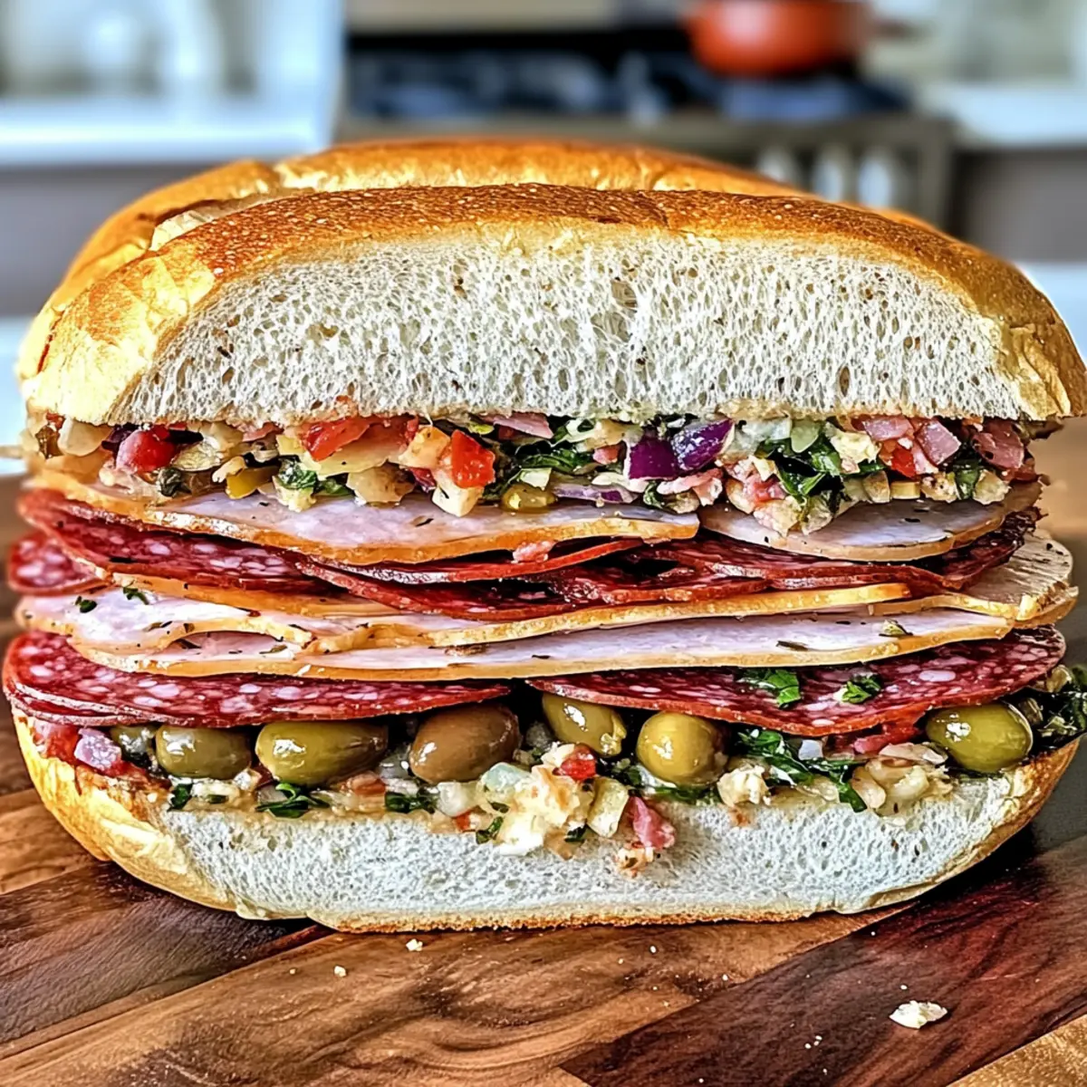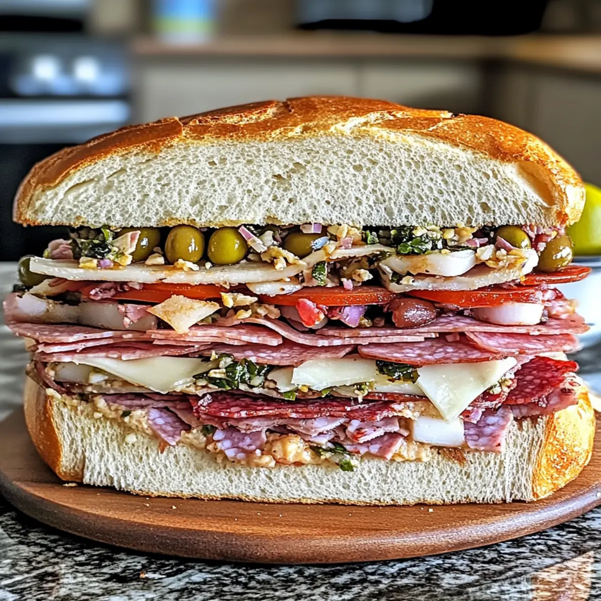 Es gibt nichts Vergleichbares zu einem herzhaften Sandwich, das die Sinne verführt und Erinnerungen an gesellige Zusammenkünfte weckt. Das Riesen Muffuletta italienisches Sandwich ist ein wahres Geschmackserlebnis, das warmes, knuspriges Brot mit zarten Fleischsorten, scharfem Provolone-Käse und einer bunten Olivensalat-Füllung kombiniert. Mit seiner enormen Größe ist es der Star jeder Feier und bietet sich perfekt für Meal Prep an, sodass man die köstlichen Schichten jederzeit genießen kann. Ob bei einem Picknick oder beim nächsten Spielabend, dieses Sandwich wird garantiert alle Gäste begeistern. Neugierig, welche weiteren Überraschungen in diesem Rezept stecken? Lass uns gemeinsam in die Zubereitung eintauchen!