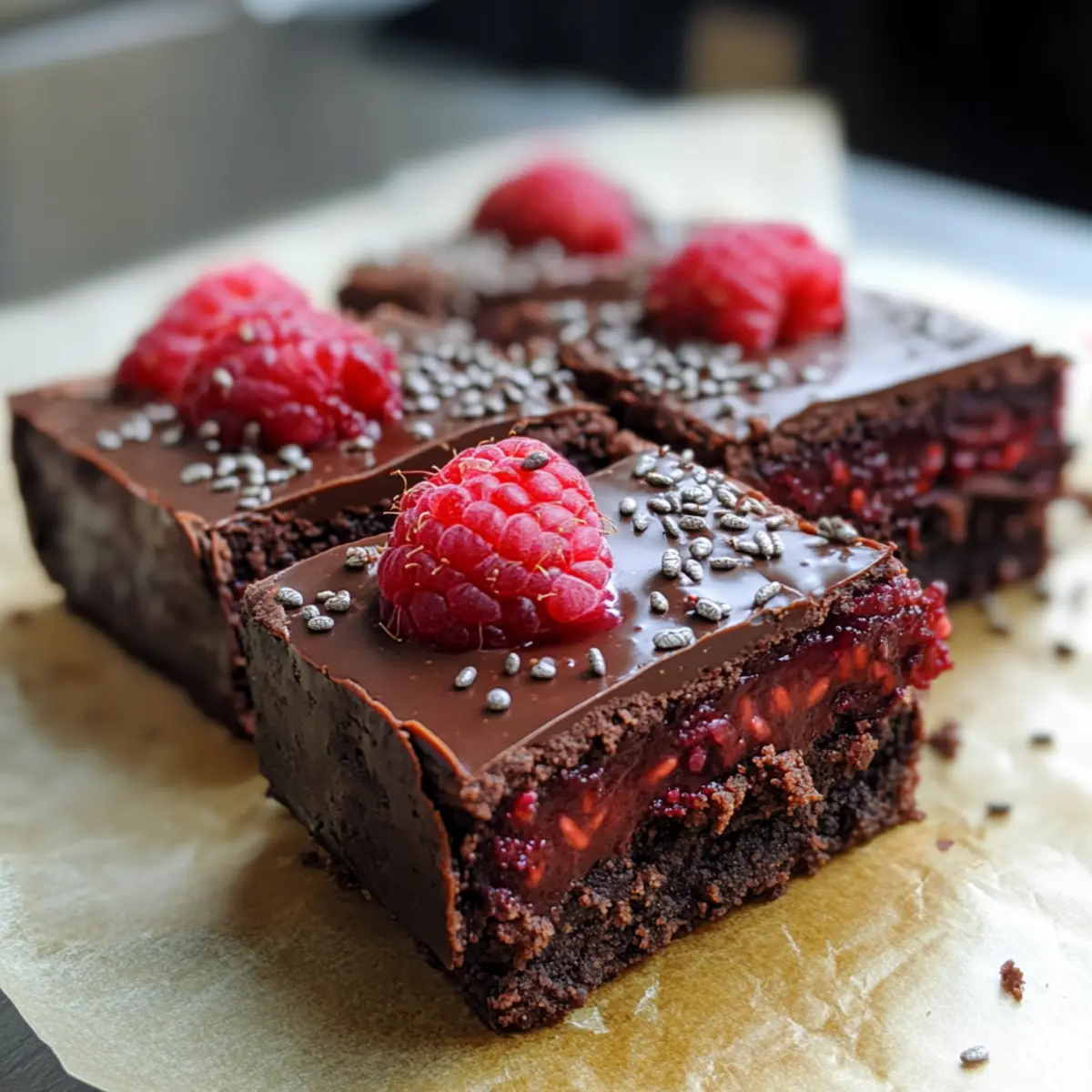 Diese Schokoladen-Himbeer-Protein-Brownies sind ideal für die Vorbereitung! Du kannst die Brownie-Basis bis zu 24 Stunden im Voraus zubereiten und im Kühlschrank aufbewahren. Stelle sicher, dass du die Mischung gut in die Form drückst, um die Textur zu bewahren und ein Zusammenfallen zu verhindern. Die Himbeersauce lässt sich ebenfalls vorher zubereiten; sie bleibt im Kühlschrank bis zu 3 Tage frisch. Wenn du bereit bist, die Brownies zu genießen, gieße einfach die geschmolzene dunkle Schokolade darüber und lasse sie vor dem Servieren erneut mindestens 2 Stunden im Kühlschrank fest werden. So sparst du Zeit in geschäftigen Wochen und erhältst dennoch ein köstliches, gesundes Dessert!
