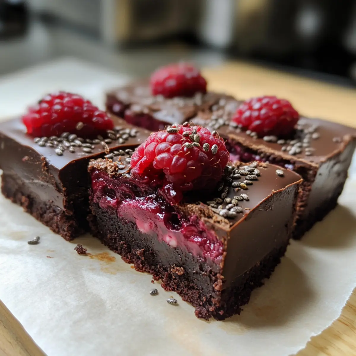 Einfachheit, das Rezept erfordert keine Backkünste und ist schnell zubereitet, ideal für Anfänger. Reiche Aromen, die Kombination aus dunkler Schokolade und frischen Himbeeren sorgt für einen unvergesslichen Genuss. Gesunde Entscheidung, voller pflanzlicher Proteine, ist es der perfekte Snack für Fitnessliebhaber oder alle, die auf ihre Ernährung achten. Vielseitigkeit, du kannst die Himbeeren gegen andere Beeren austauschen, je nach Saison und Vorlieben, und die Brownies sind glutenfrei! Beeindruckender Publikumsmagnet, ob bei Partys oder als süßer Abschluss eines gemeinsamen Essens – diese Brownies sorgen für strahlende Gesichter. Mach dich bereit für den perfekten Schokoladengenuss ohne Reue!