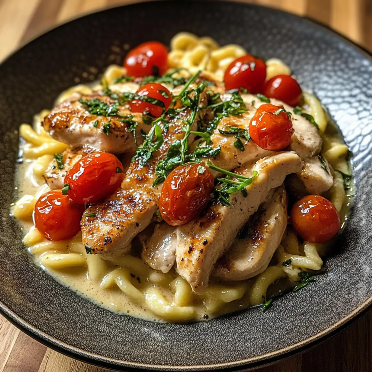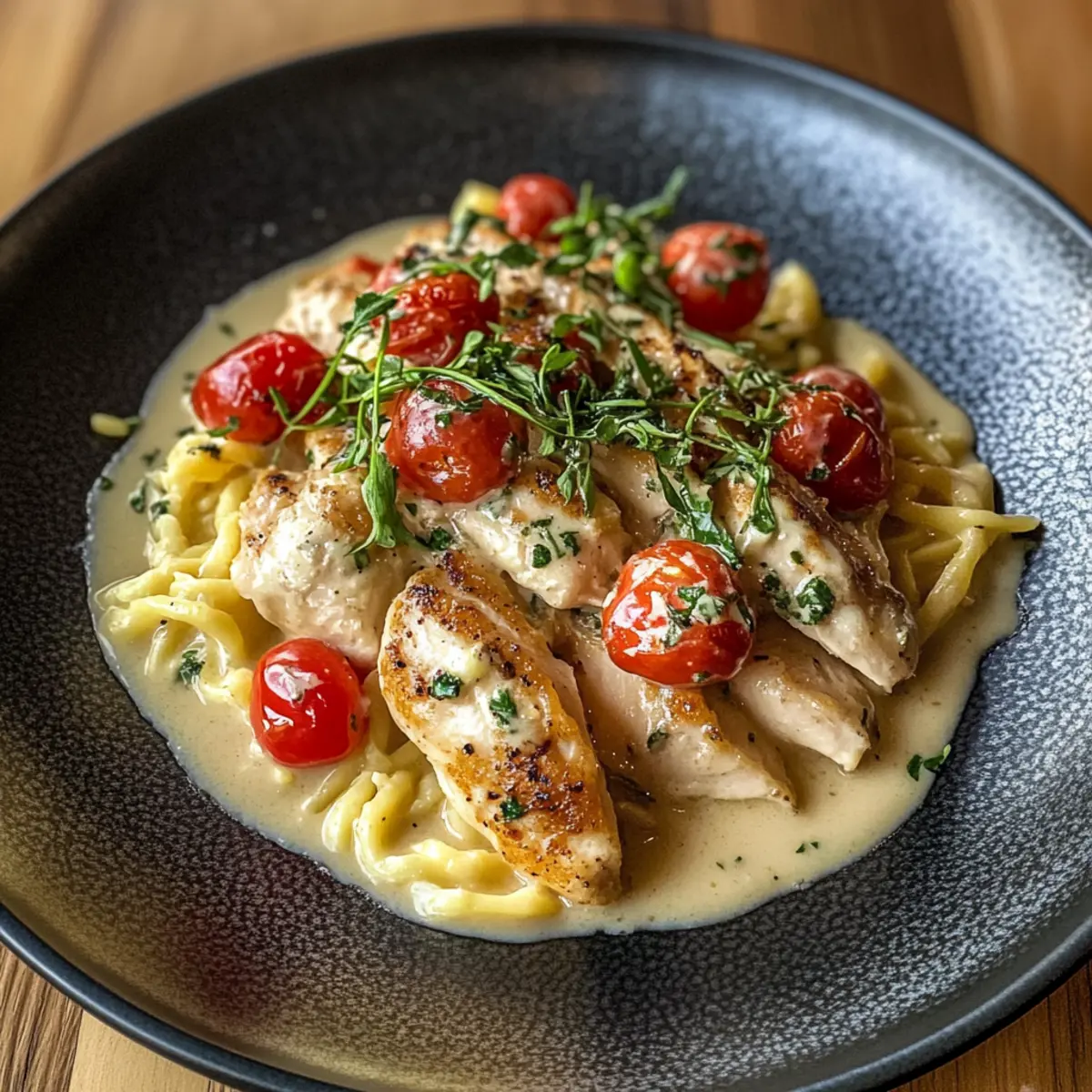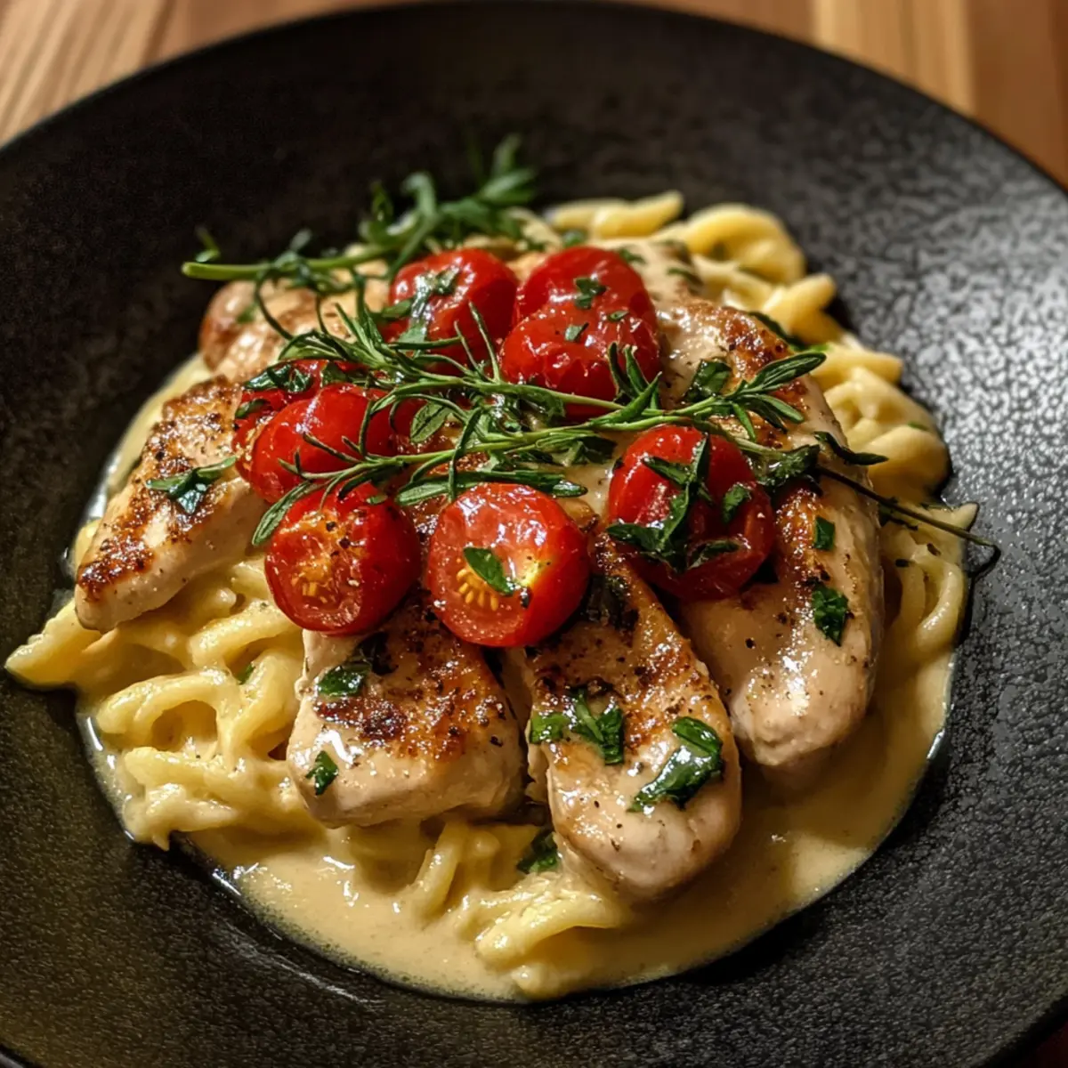 Reichhaltiger Geschmack: Die Kombination aus zartem Fleisch, einer cremigen Sauce und frischen Kirschtomaten sorgt für ein Geschmackserlebnis der Extraklasse.