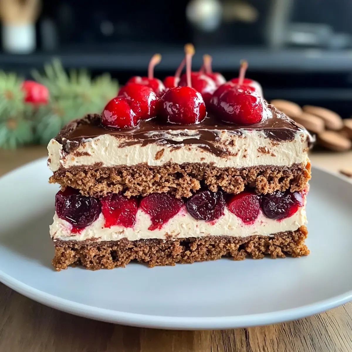 Sinnliche Aromen: Die Kombination aus würzigen Spekulatiuskeksen und fruchtigen Kirschen sorgt für ein unverwechselbares Geschmackserlebnis, das die festliche Stimmung hebt. Einfach zuzubereiten: Trotz des luxuriösen Geschmacks ist die Zubereitung unkompliziert und für jeden geeignet. Herrlich cremig: Die Mascarponecreme verleiht dem Kuchen eine samtige Textur, die jedem Bissen Tiefe gibt. Perfekt für Geselligkeit: Ob bei Familienfeiern oder gemütlichen Nachmittagen mit Freunden, dieser Kuchen ist ein echter Publikumsliebling! Winterliches Highlight: Er kann leicht im Voraus zubereitet und über Nacht gekühlt werden, sodass du mehr Zeit für die Festlichkeiten hast. Entdecke auch, wie du einfach ein Schokoladen-Dessert zubereiten kannst, um eine leckere Abwechslung zu bieten!