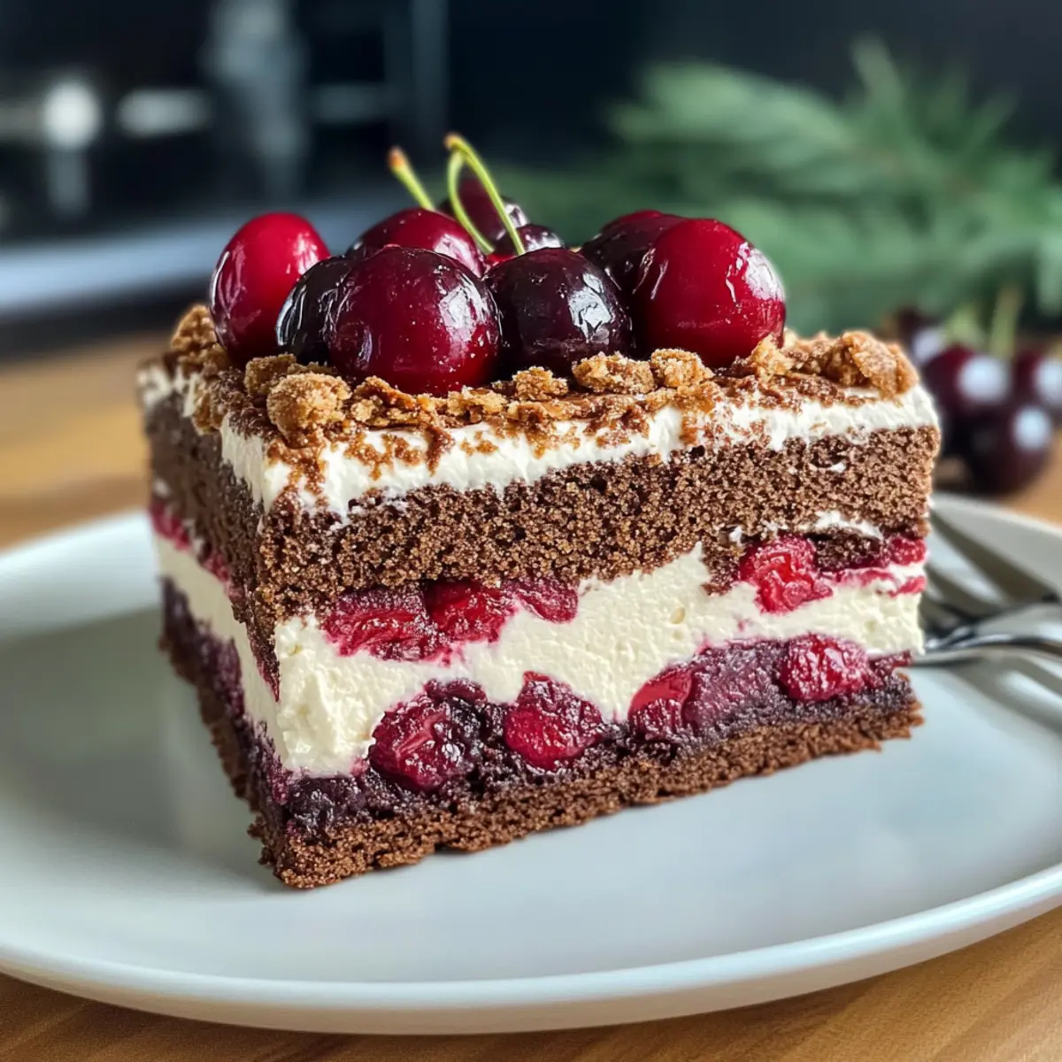 Fruchtige Variante: Tausche die Kirschen gegen Himbeeren oder frische Erdbeeren aus. Diese Beeren bringen eine fruchtige Frische, die hervorragend mit der Creme harmoniert. Ob du vorziehst, sie wirklich zu brocken oder einfach ganz auf die Bodenlage zu legen, liegt ganz bei dir!