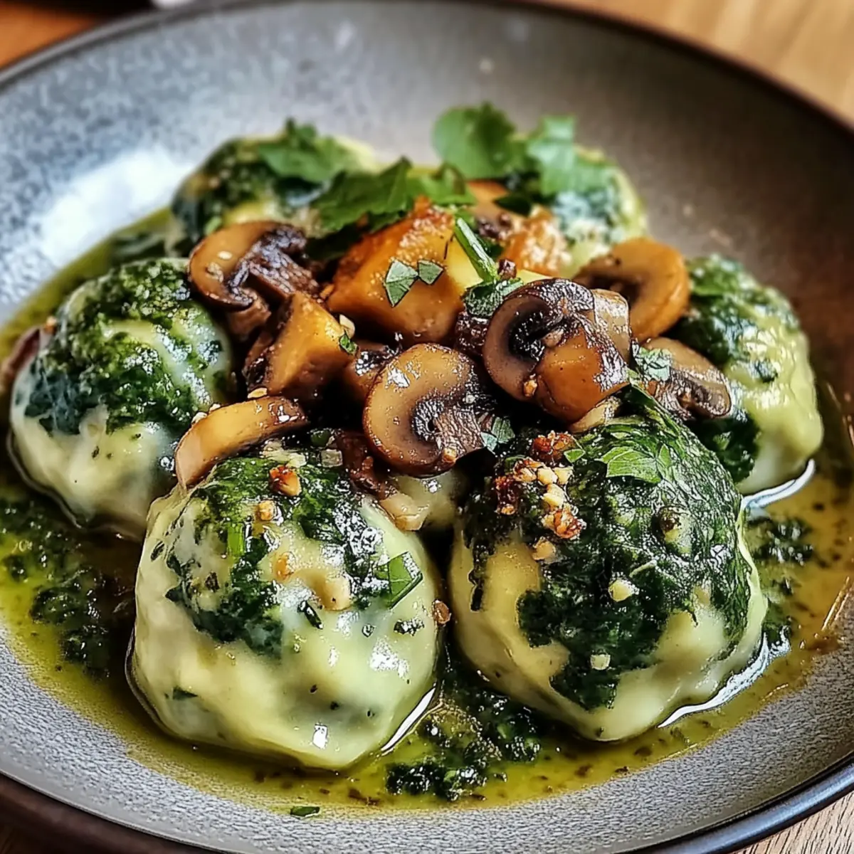 Spinatknödel mit Pilzragoût für Herzhaftes Vergnügen
