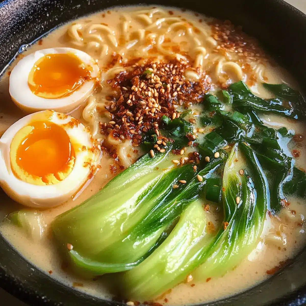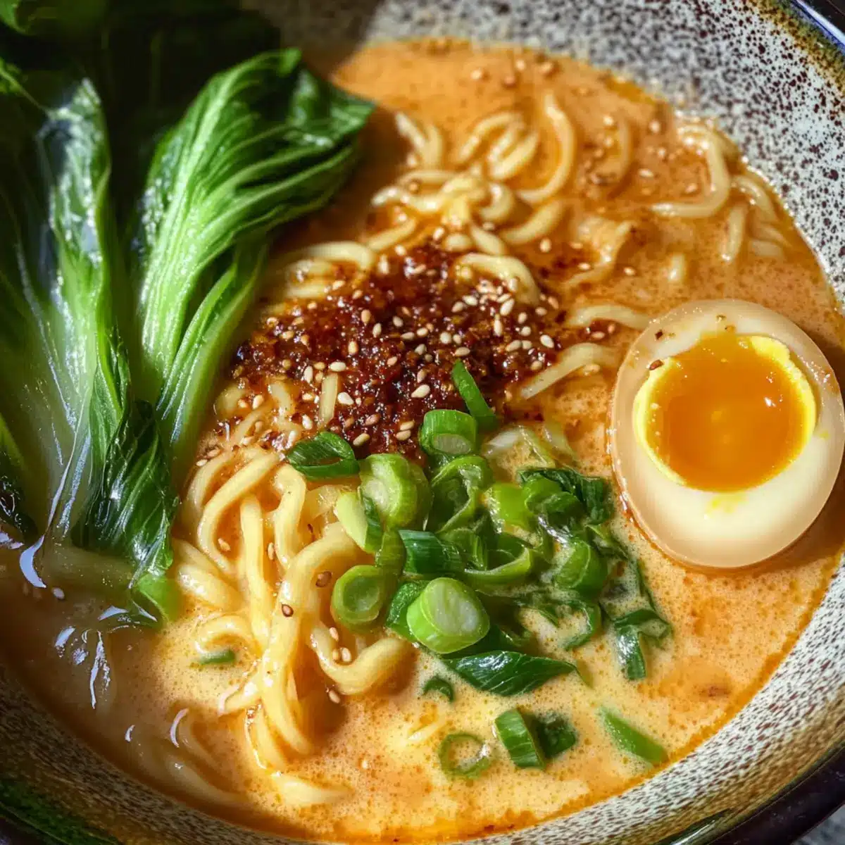 - Ramen-Ei – Weichgekochtes, mariniertes Ei zur Garnitur; für die vegane Version weglassen.