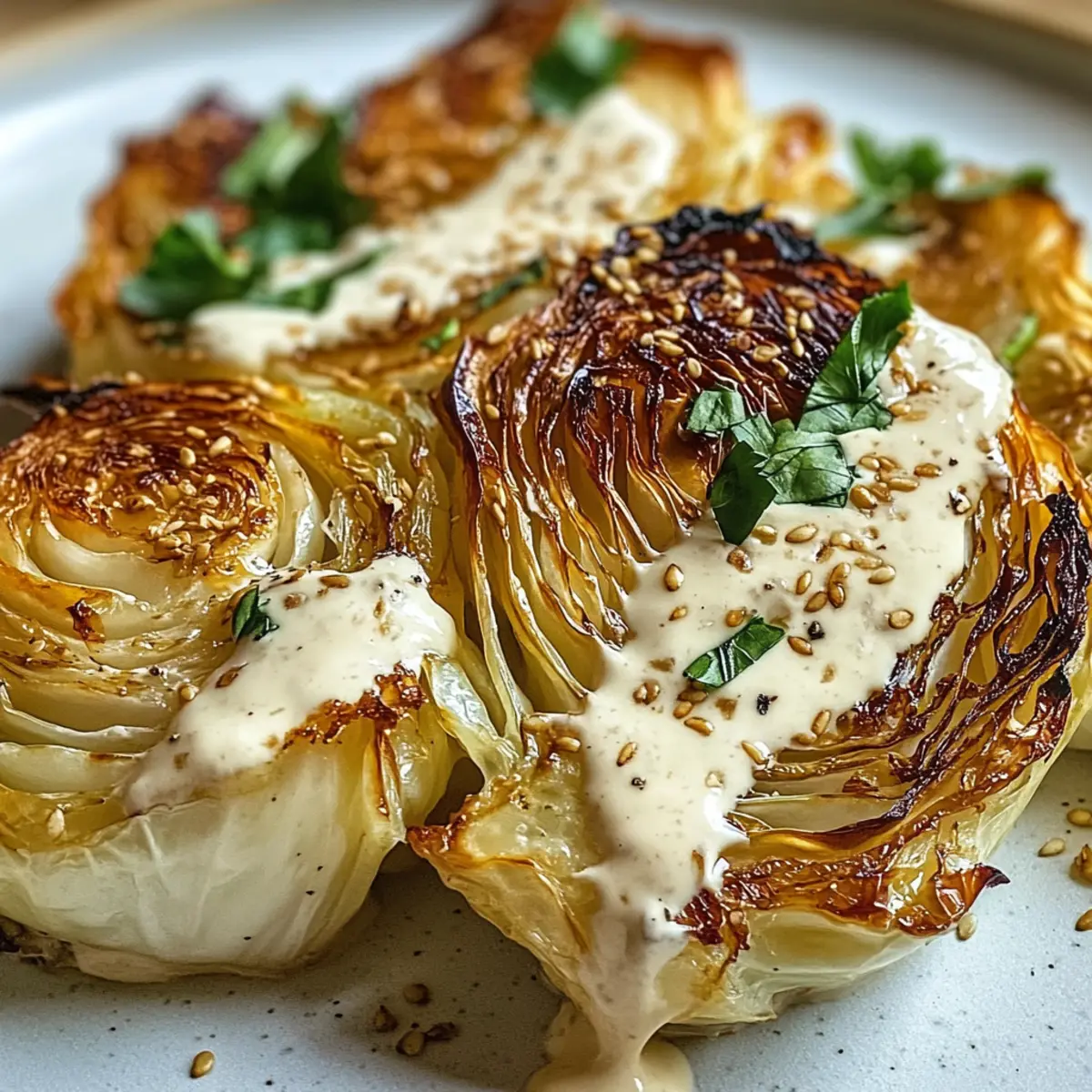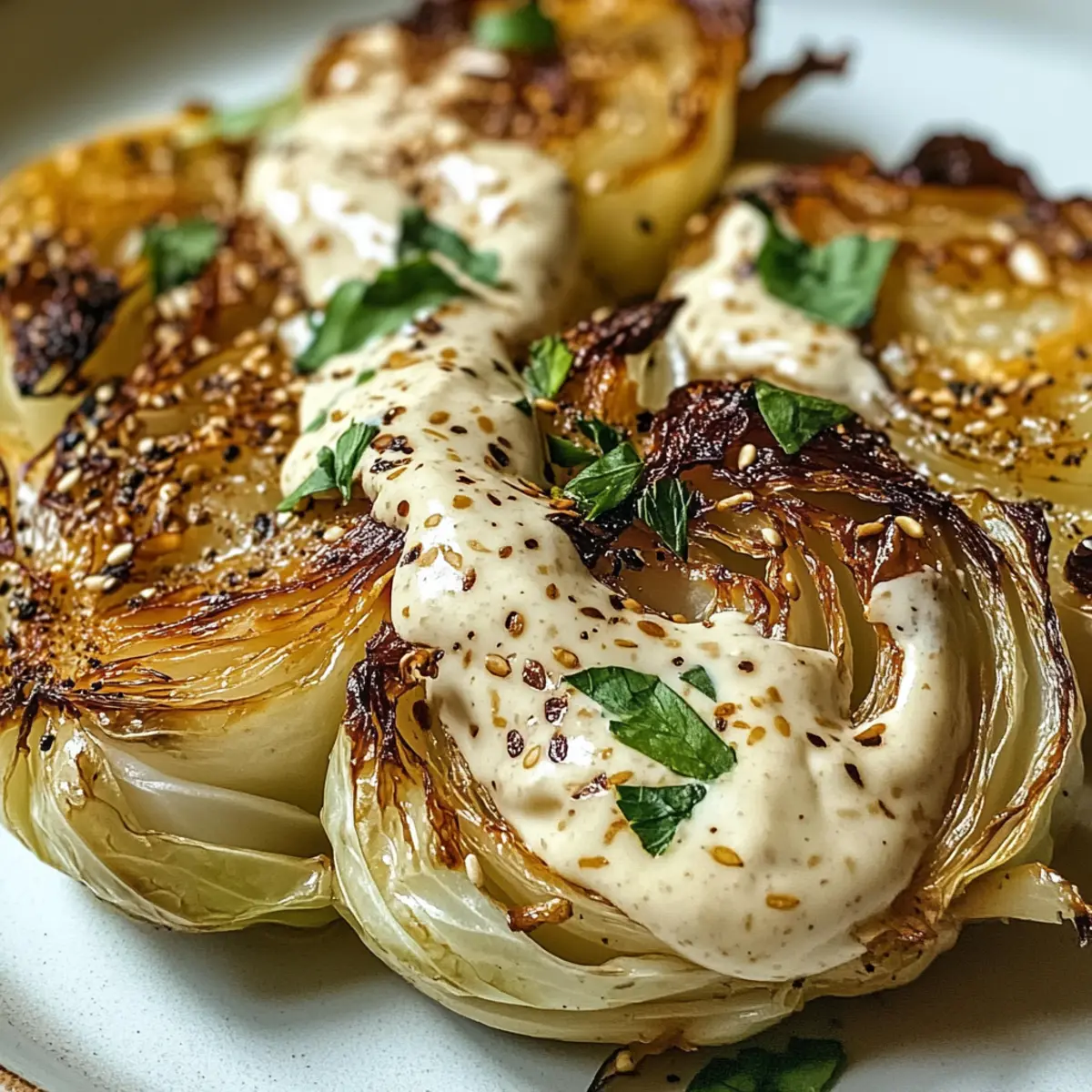 Überbackener Spitzkohl mit cremiger Tahini-Sauce