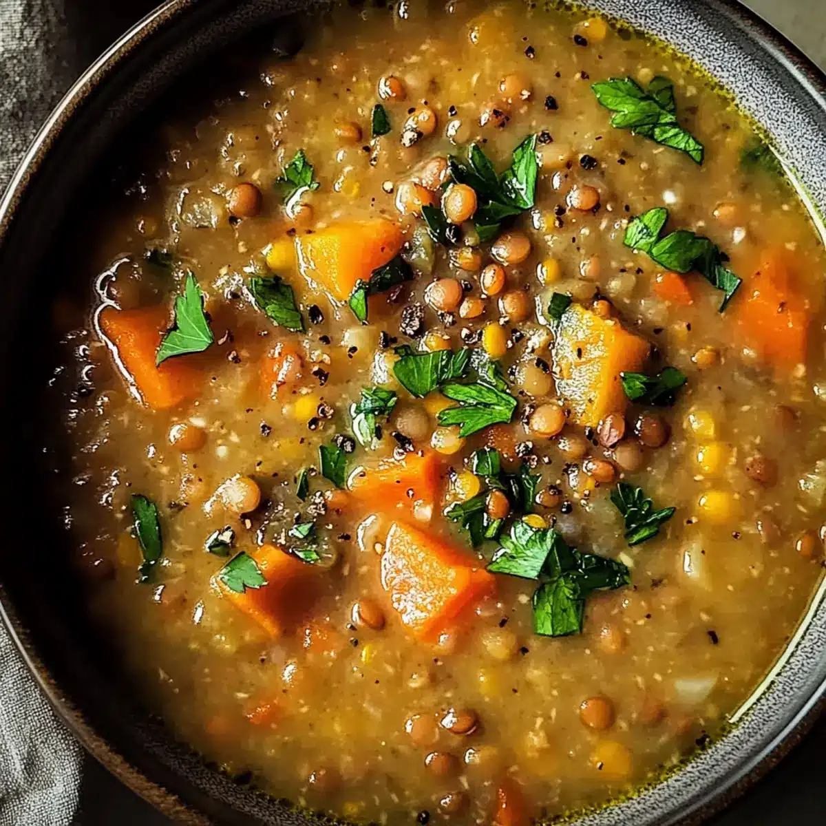 Entfalten Sie Ihre Kreativität und passen Sie diese köstliche vegetarische Linsensuppe ganz nach Ihrem Geschmack an!