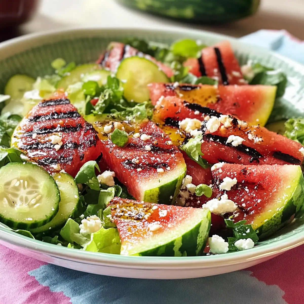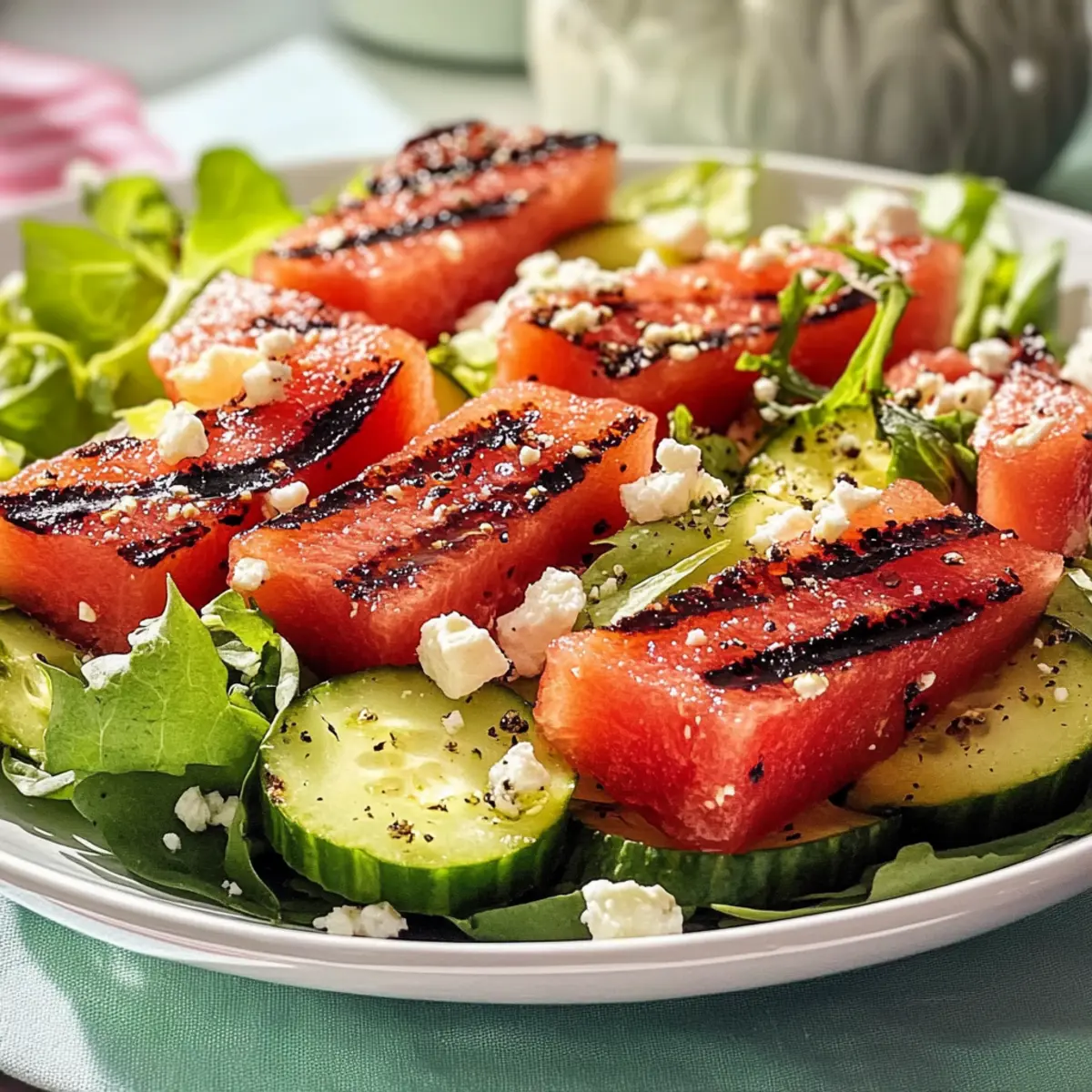 Beachte: Dieser Wassermelone vom Grill Salat ist einfach und schnell zuzubereiten und wird garantiert zum Hit bei deiner nächsten Grillfeier!