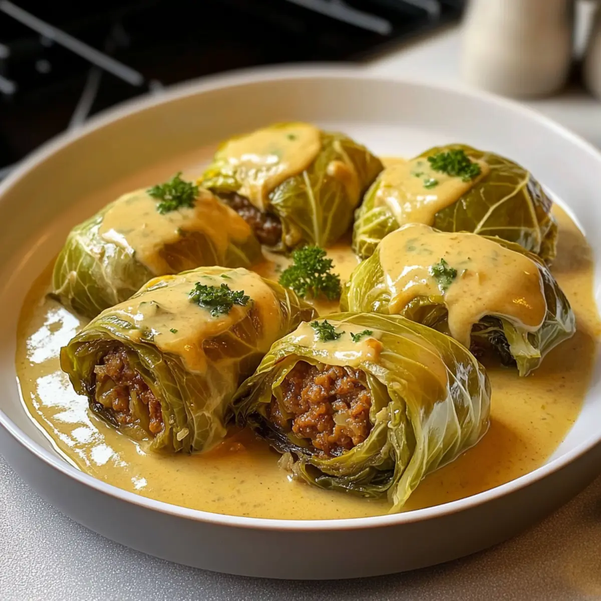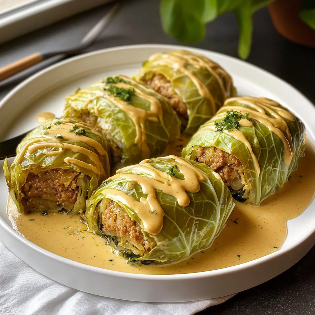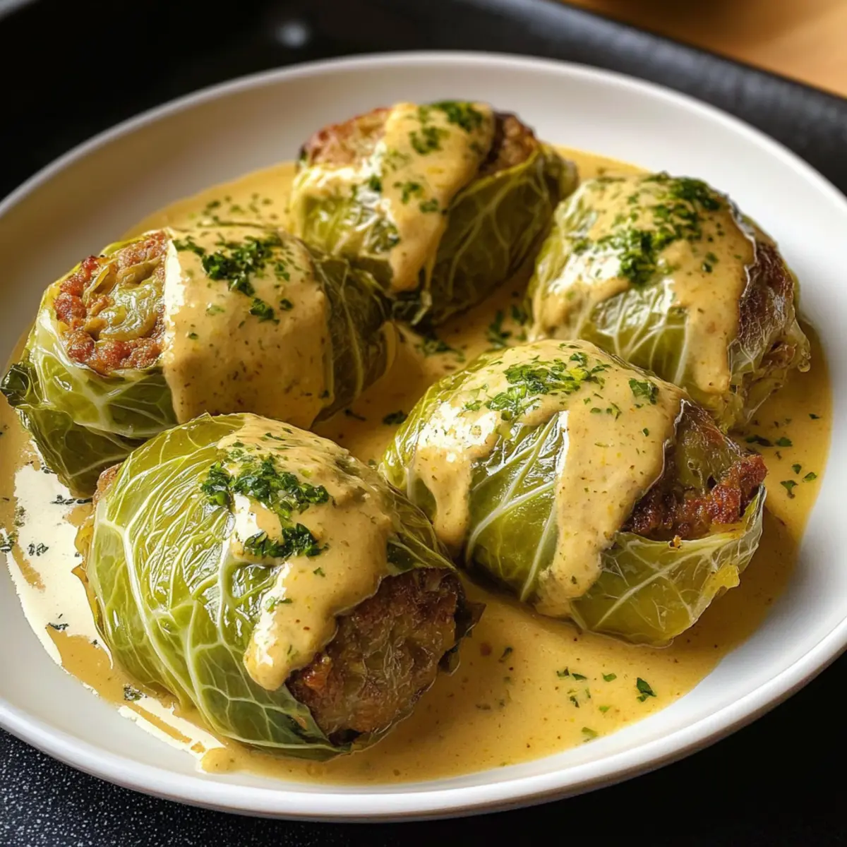 - Serviere die Wirsingrouladen heiß, überzogen mit der cremigen Sauce.