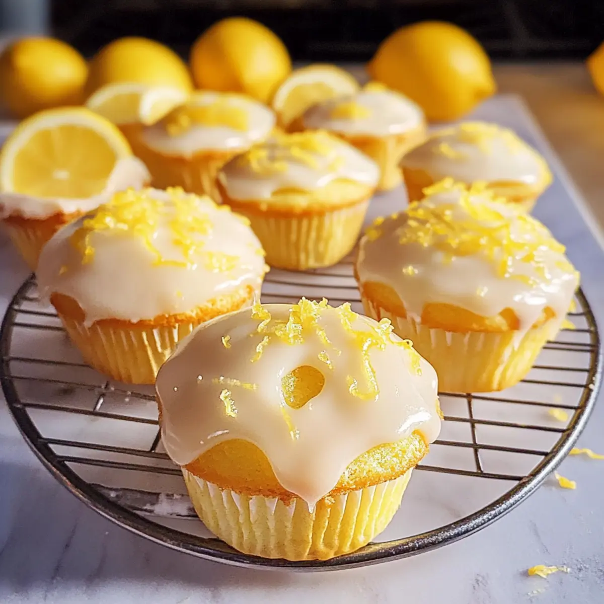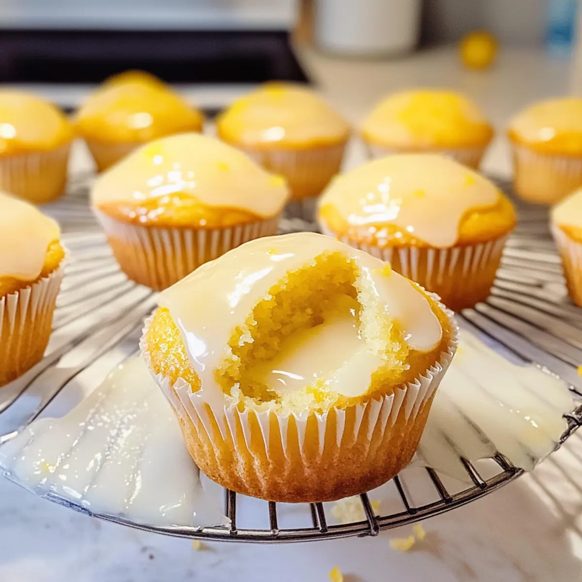 Gießen Sie die Glasur gleichmäßig über die ausgekühlten Muffins. Wenn gewünscht, können Sie zusätzlich etwas Zitronenschale zur Dekoration verwenden. Dies sieht nicht nur gut aus, sondern verstärkt auch den frischen Zitronengeschmack.